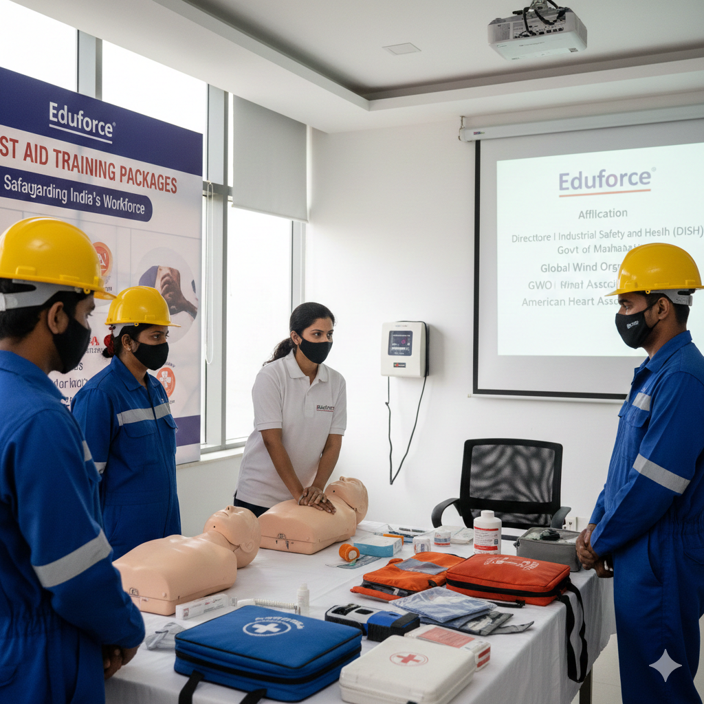 Hands-on first aid training near LBS Marg MumbaiProfessional first aid course for security personnelReputed first aid training providers for renewable energyHow to get DISH first aid certification in MaharashtraMultilingual first aid training in Hindi and MarathiFirst aid training with advanced manikins in MumbaiComprehensive first aid and CPR training for schools1-day first aid certification course IndiaAffordable first aid training packages for SMEsBest first aid training institute in Mulund MumbaiEmergency handling skills for safety officersOccupational health and safety training packagesFirst aid training for manufacturing unitsConfined space emergency response trainingFirst aid for electrical accidents and shocksRemote area first aid for technical staffTrauma management training for industrial safetyChemical splash and burn first aid trainingConstruction site first aid training IndiaAdvanced first aid for high-risk industriesCorporate safety culture development programsFirst aid training for IT companies in MumbaiOffice emergency preparedness training IndiaEmployee wellness and safety training packagesCustom first aid workshops for Indian companiesEmergency response training for corporate professionalsFirst aid training packages for HR managersOnsite first aid training for corporate officesWorkplace CPR and first aid certification for teamsCorporate first aid training for employees IndiaAHA Basic Life Support training for healthcare providersAccredited life-saving skills certificationOffshore wind safety training packages IndiaGWO BST First Aid refresher courseAHA certified first aid and AED trainingInternational standard first aid courses in IndiaGlobal Wind Organisation basic safety trainingGWO First Aid training for wind industry IndiaAHA BLS and Heartsaver certification MumbaiAmerican Heart Association CPR training IndiaWorkplace safety compliance training IndiaDISH approved safety training for workersIndustrial safety and health training MaharashtraGovernment recognized first aid institutes in MumbaiStatutory first aid training for factories in IndiaDISH Maharashtra first aid certification for industryFirst aid training under Maharashtra Factories RulesDirectorate of Industrial Safety and Health certified coursesDISH approved first aid training in MumbaiFirst aid training packages offered by reputed organisations in India
