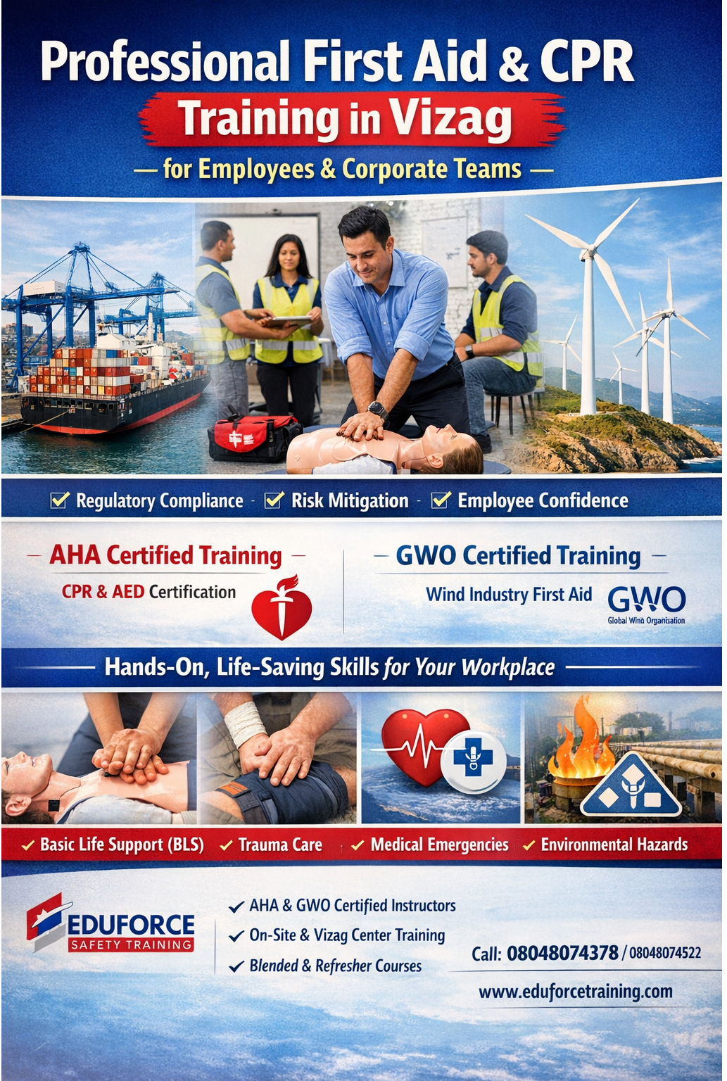 Workplace first aid certification courses with CPR in VizagCorporate CPR and first aid training packages in VizagProfessional safety training institute in Vizag for CPRFirst aid training for renewable energy sector in VizagEmergency medical response training for employees in VizagCertified CPR instructors for corporate training in VizagFirst aid and CPR refresher courses in VisakhapatnamCorporate first responder training programs in VizagWorkplace life-saving skills training in Vizag Andhra PradeshCPR training for maritime and port workers in VizagSafety compliance training programs in Visakhapatnam industriesFirst aid and CPR certification for office staff in VizagIndustrial health and safety training with CPR in VizagEmployee emergency response training courses in VizagBest CPR and AED training institute in VizagCorporate team first aid workshops in VisakhapatnamCPR training programs for manufacturing companies in VizagFirst aid training for logistics and port workers in VizagWorkplace safety training with CPR certification in VizagOn-site emergency medical training for companies in VizagProfessional CPR certification courses in Vizag Andhra PradeshFirst aid training for construction companies in VizagIndustrial emergency preparedness training in VizagCPR and basic life support training for employees in VizagCorporate first aid compliance training in VisakhapatnamBest first aid and CPR training company in VizagWorkplace accident response training in Vizag industriesCertified trainers for CPR and first aid in VisakhapatnamFirst aid and emergency care training for corporate offices VizagCPR training for factory workers in Vizag Andhra PradeshProfessional life support training courses in VisakhapatnamEmployee safety training programs with CPR certification VizagIndustrial safety and CPR certification training in VizagFirst aid and CPR workshops for IT companies in VizagCorporate health and safety training with CPR in VizagGWO first aid training for wind energy technicians in VizagWorkplace emergency training programs in VisakhapatnamSafety training institutes for CPR and first aid in VizagAdvanced first aid training for industrial workers in VizagCPR and AED training for companies in VisakhapatnamFirst aid certification courses for corporate staff in VizagEmergency response and CPR training for employees in VizagBest corporate first aid training institute in VizagOn-site first aid and CPR training for offices in VizagAHA certified CPR training in Visakhapatnam for companiesIndustrial first aid and CPR training in Vizag for workersWorkplace CPR training providers in Vizag Andhra PradeshEmployee first aid training programs in Visakhapatnam industriesCorporate first aid and CPR certification courses in VizagProfessional first aid and CPR training in Visakhapatnam for corporate teams