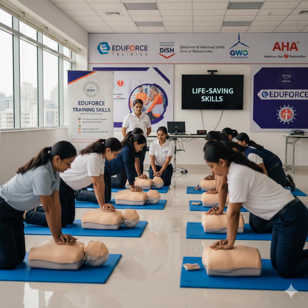 Government recognized first aid certificate in MaharashtraAutomated External Defibrillator (AED) training MumbaiBasic life support training for gym trainersLife-saving skills workshop for schoolsCost of first aid certification in MumbaiFirst aid kit training for factory workersBest CPR and AED training for non-medical professionalsImportance of first aid in the wind energy sectorDISH Maharashtra first aid certificate validityHow to get first aid certification in MumbaiOffshore safety training Mumbai (GWO)Advanced first aid techniques workshopPediatric first aid training MumbaiGWO refresher course MumbaiHeartsaver First Aid CPR AED certificationAmerican Heart Association BLS course MumbaiAHA certified CPR training MumbaiBasic Safety Training (BST) for wind industryGlobal Wind Organisation safety courses IndiaGWO First Aid training MumbaiCorporate wellness and safety programs MumbaiFirst aid training for HR and managersStatutory safety training for industriesFactory Act first aid training MumbaiOn-site first aid training for employeesWorkplace safety compliance training MumbaiCorporate first aid and CPR workshopsIndustrial safety training MumbaiDirectorate of Industrial Safety and Health first aid courseDISH approved first aid training MaharashtraBLS training center in MumbaiFirst aid training for individuals MumbaiHands-on first aid workshop MumbaiCertified first aid trainer in MumbaiEmergency response training MumbaiFirst aid training institute in MumbaiCPR training classes in MulundFirst aid certification MumbaiBest first aid course in Mumbai SuburbanTop first aid training workshops in Mumbai near meGovernment approved safety certifications MumbaiFirst aid and AED training MumbaiWorkplace safety certification MaharashtraEmergency medical training MumbaiCorporate first aid and CPR MumbaiBasic Life Support certification MumbaiIndustrial safety training MaharashtraGWO wind industry first aid MumbaiCertified first aid course MumbaiFirst aid training workshops in Mumbai