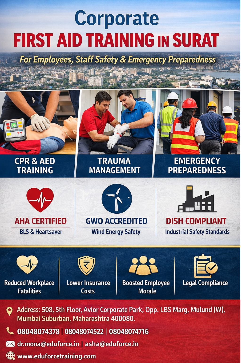 Best AHA approved first aid training in Surat for companiesCorporate health and safety first aid training in Surat GujaratIndustrial emergency preparedness training in Surat for workforceWorkplace first aid certification programs in Surat for employeesFirst aid training for staff safety and risk management in SuratCorporate emergency medical response training in SuratOn-site first aid and CPR training in Surat for organizationsFirst aid training for chemical industry employees in SuratCorporate safety compliance training in Surat with first aid certificationCertified workplace first aid trainers in Surat for corporate clientsFirst aid and emergency management training in Surat for companiesIndustrial safety and first aid training in Surat for staff preparednessCorporate first aid training provider in Surat with global certificationFirst aid training in Surat for renewable energy sector workersEmployee safety training in Surat with first aid and emergency responseSafety training institute in Surat for first aid and CPR certificationCorporate first aid workshops in Surat for safety complianceWorkplace CPR AED training in Surat for corporate employeesFirst aid training for petrochemical industry workers in SuratCorporate emergency response and first aid training in SuratBest industrial first aid training center in Surat GujaratWorkplace accident response training in Surat for factory workersOccupational first aid training in Surat for employee safetyCorporate first responder training in Surat for workplace emergenciesFirst aid and CPR course in Surat for industrial safety complianceCorporate health and safety training in Surat with first aid certificationHands-on first aid training in Surat for employees and staffEmergency preparedness training in Surat for corporate officesFirst aid certification course in Surat for corporate teamsWorkplace safety and first aid training in Surat for staff protectionFirst aid training programs in Surat for manufacturing companiesCorporate BLS training in Surat with AHA certificationIndustrial first aid and emergency care training in Surat GujaratEmployee first aid training in Surat for workplace accident responseCorporate safety and first aid certification training in SuratBest first aid and safety training provider in Surat for companiesAdvanced corporate first aid course in Surat for industrial employeesWorkplace emergency response training in Surat for staff safetyFirst aid training for textile industry workers in SuratCorporate CPR and AED training in Surat for emergency preparednessProfessional first aid and CPR training in Surat for company employeesOn-site corporate first aid training in Surat for factories and officesCertified first aid training in Surat for corporate and industrial workforceDISH compliant corporate first aid training in Surat for industriesEmergency first aid training in Surat for office staff and workersWorkplace first aid and CPR training in Surat for corporate employeesBest corporate first aid training institute in Surat for companiesIndustrial corporate first aid training in Surat for staff emergency preparednessAHA certified corporate first aid training in Surat for workplace safetyCorporate first aid training in Surat for employee safety and emergency response