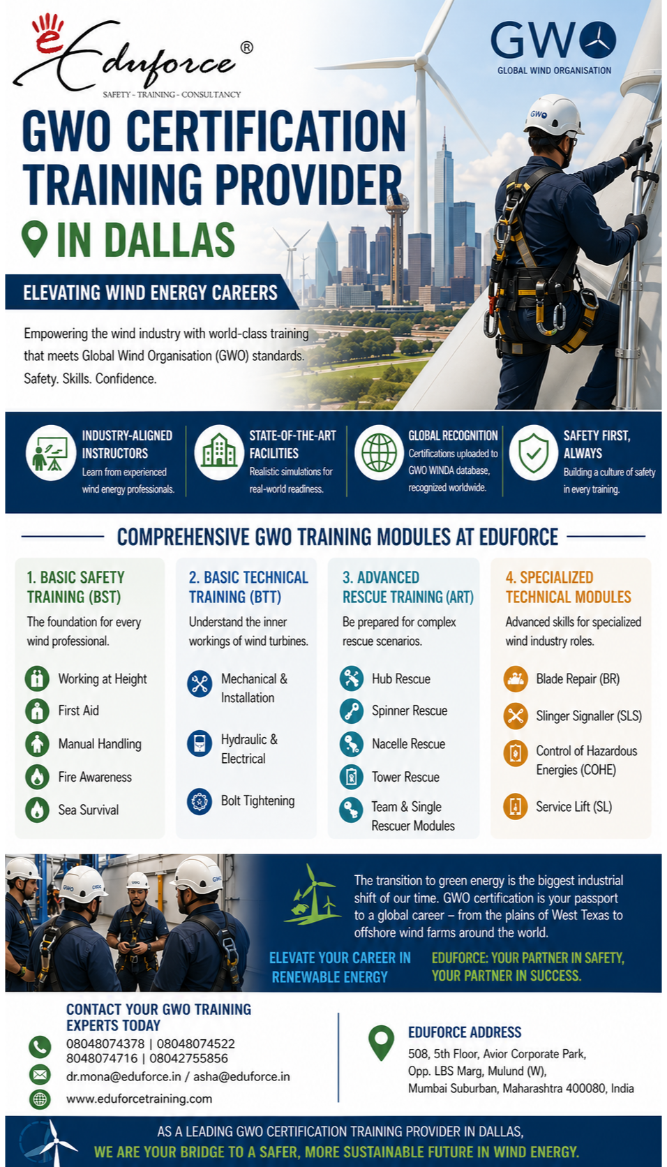 Eduforce Trainings & Consultancy 2026-04-24T08:05:14 2026-04-25T06:05:01 Eduforce Trainings & Consultancy GWO Certification Training Provider in Dallas | Eduforce IndiaGWO Certification Training Provider in Dallas | Eduforce India2026-04-24T08:05:14 read more