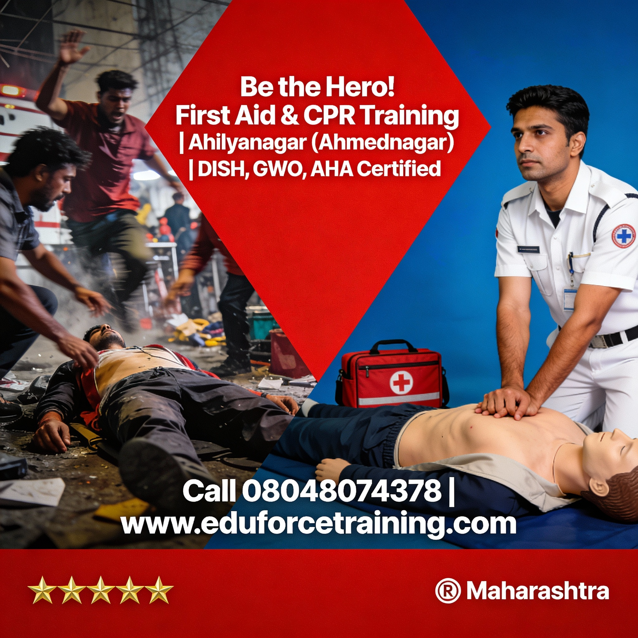 Basic life support training for office staff AhilyanagarWeekend first aid workshops with Eduforce in AhmednagarCPR certification valid for Maharashtra factories AhilyanagarFirst aid training for schools and colleges in AhmednagarFirst aid certification events near Ahmednagar railway stationSafety week CPR workshops in AhilyanagarFirst aid training for Ahmednagar small businessesAED defibrillator training courses in AhmednagarFirst aid training for chemical industry workers AhilyanagarPediatric first aid and CPR training AhmednagarOnsite first aid training for factories Ahmednagar MaharashtraGroup CPR certification workshops in AhilyanagarCorporate first aid training packages for Ahmednagar companiesGWO first aid recertification classes AhmednagarDISH mandated first aid renewal course AhilyanagarCPR refresher training certified by AHA in AhmednagarCertified first responder program for schools in Ahmednagar districtFirst aid training that saves lives in workplace emergencies AhilyanagarHands-on CPR and AED training courses Ahmednagar MaharashtraGWO basic safety training including first aid in AhilyanagarAmerican Heart Association CPR training centers in AhmednagarGroup first aid training discounts for Ahmednagar businessesEmergency first aid refresher course near Ahilyanagar city centerWeekend CPR certification workshops available in AhmednagarOnsite first aid training for companies in Ahilyanagar areaFirst aid CPR training classes starting this month in AhmednagarHow long is AHA CPR certification valid after training in AhilyanagarIs first aid training mandatory for factories in Ahmednagar MaharashtraBest first aid training institute with DISH affiliation in AhilyanagarHow much does CPR certification training cost in AhmednagarWhere to find certified first aid and CPR training in AhilyanagarEmergency first response training for aviation staff AhilyanagarAHA approved CPR classes for healthcare workers in AhmednagarFirst aid courses for construction site supervisors Ahmednagar MaharashtraCPR training certification for pharmaceutical employees in AhilyanagarGWO certified first aid training for wind energy workers AhmednagarIndustrial safety first aid training programs in Ahmednagar districtWorkplace CPR and basic life support training near AhilyanagarDISH approved first aid certification courses in Ahmednagar MaharashtraFirst aid and CPR training for factory workers in Ahilyanagar AhmednagarGWO certified safety training MaharashtraFirst aid and safety certification AhilyanagarOSHA compliant safety training AhmednagarEmergency medical response training MaharashtraAED and Basic Life Support course AhilyanagarCertified first aid training AhmednagarWorkplace emergency response training MaharashtraGlobally recognized CPR certification AhilyanagarIndustrial safety certification AhmednagarFirst Aid CPR training Ahilyanagar Maharashtra